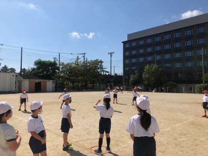 さわやかな秋晴れの空のもと,ハンドベースボールを楽しんでいる様子です。学習のふり返りでは,