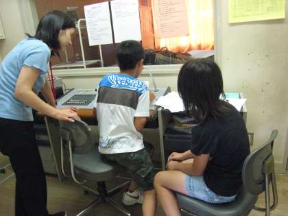 1週間に1回,英語講師の岩本先生が来られる日に,放送委員会の子どもたちが楽しい英語の番組を放送します。