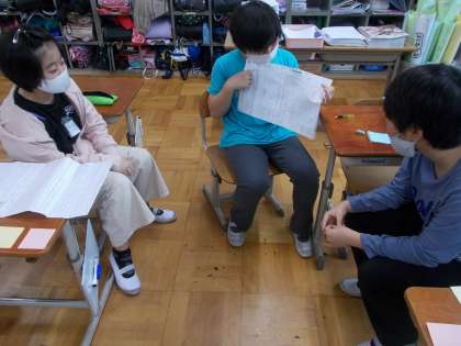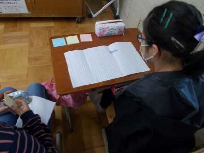 グラフや表を用いて,これからの社会は「くらしやすい方向に向かっているのか」「向かっていないのか」立場を明確にして文章を書きました。今日は完成した文章を読み合い,共感したことや疑問に思うことを交流しました。
