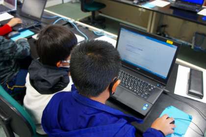 今度は,人々のくらしに注目し,どのような道具を使って生活をしていたのか調べることにしました。インターネットを使って,「昔の道具」について調べている様子です。
