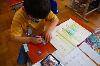 どのように読んだら,役になりきれるかな?声の大きさ,早さ,高さ・・・友だちと一緒に考えたら,いろんなアイデアがたくさん見つかりました。