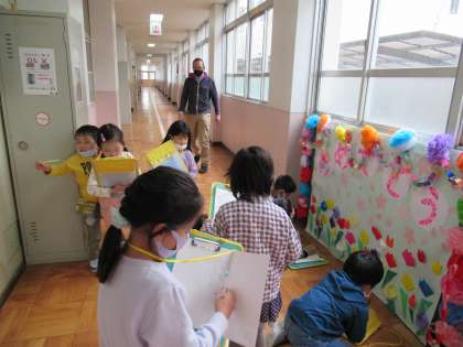 今日は,書写の学習で,校内にあるひらがなを探しに行きました。