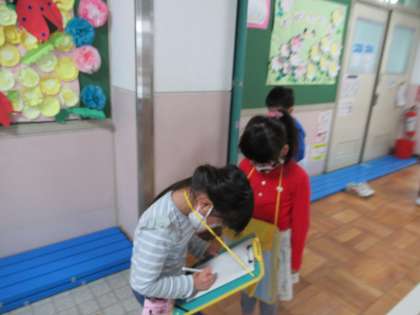 ぴかぴかの探検ボードを持って,見つけたひらがなをメモしていきました。