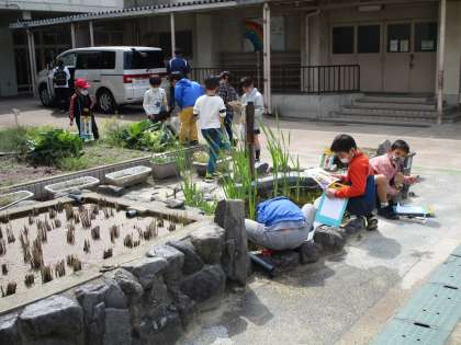 植物や虫など,校内の自然を観察しました。虫眼鏡の使い方を学び,色・形・大きさなどを詳しく観察しました。