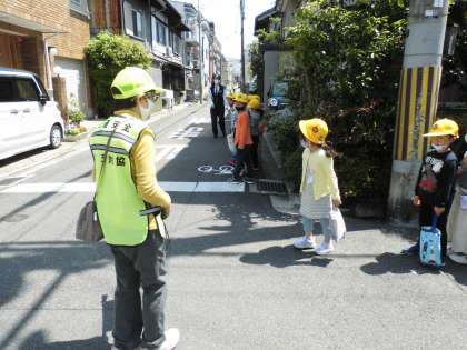 お話しを聞いた後,実際に地域を歩き,一旦停止や左右の確認,横断歩道の渡り方など大切なことを実践的に学ぶことができました。