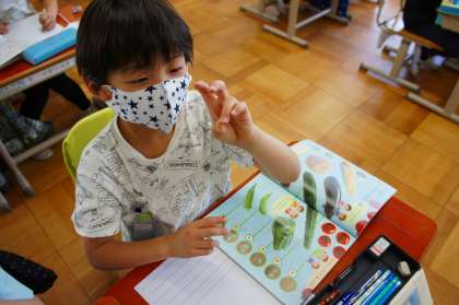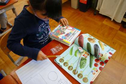 【2年生】 生活科 「ぐんぐんそだて おいしいやさい」 種の観察をしました