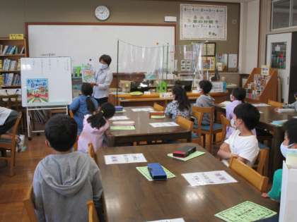 お話の後,本を借り,読んだ本を読書ノートに記録していました。