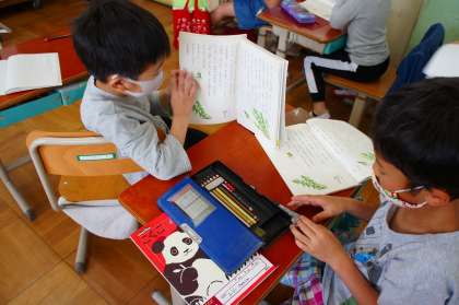 「たんぽぽの ちえ」の文章を読んで,「ふしぎだな。」「おもしろいな。」「どうしてかな。」と思ったことについて話し合いました。