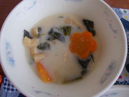 豆乳の味噌汁にハッピーキャロットが入っていました。