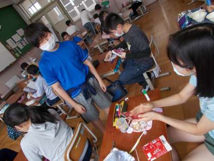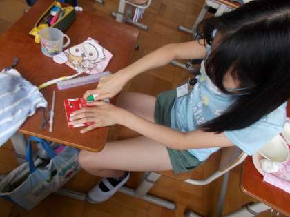 ここ最近,牛乳パックの厚みをできる限り薄くすることに励んでいる子どもたちの光景が見られます。達人にアドバイスをもらいにいく子どもの姿もありました。