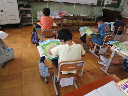「お寺や神社が多いね。」「動物園には行ったことがあるよ。近くに平安神宮があるんだね。」など,気づいたことをノートにまとめていました。
