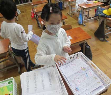 まず,朝登校してきたら,一生懸命取り組んできた宿題を提出します。
