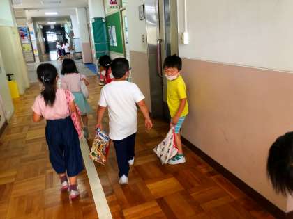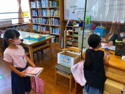 今日の天気は晴れ。ですが,中間休みにブックバッグを持って図書室に向かうたくさんの子どもたちの姿が見られました。