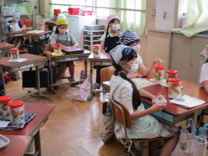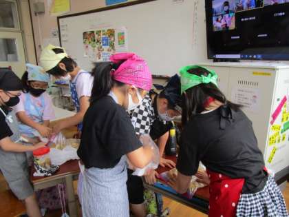 Zoomを通して,JA和歌山県農の方から産地の紹介や梅についてのお話を聞いた後,梅シロップと梅干しづくりに取り組みました。この日を楽しみにしていた子が多く,楽しそうに活動していました。
