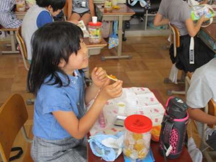 給食中には,梅シロップを水で割った梅ジュースを飲んだり,クラッカーに梅ジャムを塗って食べたりしました。