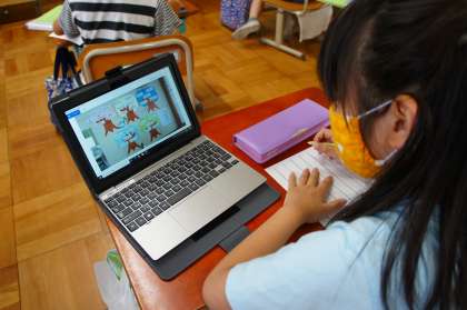 撮った写真を見ながら,メモを作りました。もっと調べたいことがある子は,他の先生にインタビューしたり,図書室の本で調べたりしていました。