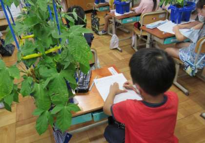 目や耳や鼻や手など,五感を使って夢中になって朝顔を観察する姿が見られました。