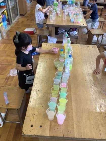 透明の水が徐々に色づいていく楽しさに,興奮の声が上がっていました。