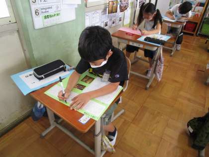 先日,モデル文の文章の組み立てを読んで,報告する文章の書き方について学びました。学んだことを生かし,作ったメモから文章を書きました。