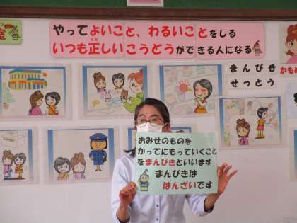 振り返りには,「友だちを傷つけたり悪口を言ったりすることをしないようにしたいです。」「お店のものを取ることは万引きといって,絶対してはいけないことだと知りました。」など,学んだことを書いていました。