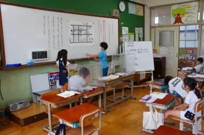 今日は,今までよりも少し複雑な地図を使って道案内をしてみました。でも,今までの学習を生かして,「○○屋さんをの角を右に曲がって・・・」「三つ目を左に曲がるよ。」「ポストが目印です。」などと,詳しく道案内していました。
