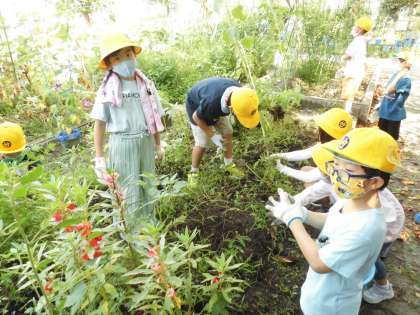 短い時間でも,一生懸命に草抜きをしている姿がたくさん見られました。暑さに負けず,どんなことにも一生懸命に取り組める1年生がとても素敵でした。