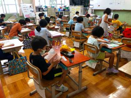 今週から9月に入りました。まだまだ暑い日は続きそうですが,季節の上では「読書の秋」です。今日のように雨が降っている日には,図書室に行ったり教室で読書を楽しんだりする姿が増えます。
