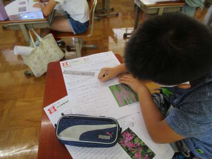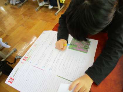 国語科では今までの学習を確かめるテストに挑戦。初めて読む文章でしたが,じっくり読んで取り組むことができました。