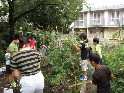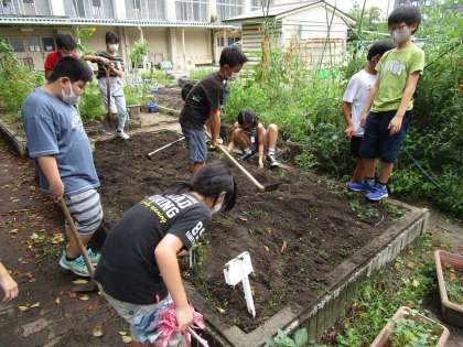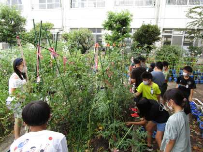 総合的な学習の時間で取り組んできた「梅小路ファーム」。次の栽培に向けて土を休ませるため,夏野菜を撤収しました。今まで育ててきた野菜を抜く子どもたちの表情は,どこか寂しげでした。