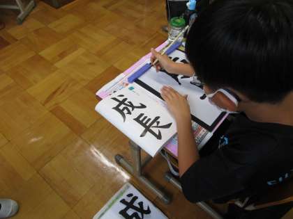 書写「筆順と字形」では,前回練習した「成長」の清書に取り組みました。前回の練習をいかして,筆順を意識しながらよい姿勢で書くことができました。