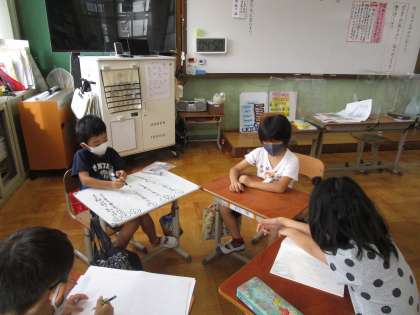 「場面ごとの出来事を比べて比べて読む時間がいるね。」「感想を書く時間がいるね。」など,グループで出し合いました。自分たちで考えるのがとても上手になってきました。