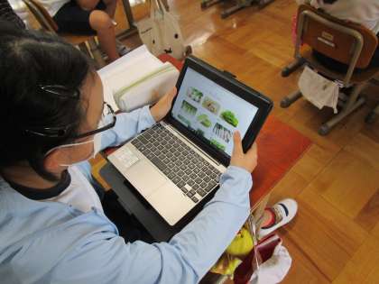 梅小路ファームでは,次に育てる野菜にはどんなものがいいか,インターネットを使って調べました。ブロッコリーや白菜など,いろいろな野菜があると気づいた子どもたち。次回からはどの野菜にするといいか,考えていきます。