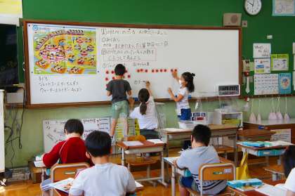 今週から下の教科書に入りました。予定表を配ったときから,「やったー!かけ算だ!」と,楽しみにしている子が多かったです。2年生といえばかけ算!と,心待ちにしているようでした。