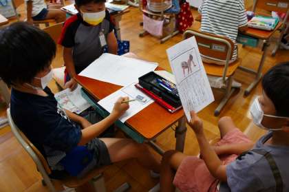 国語科で,今まで「春」「夏」を感じる言葉を見つけ,自分が見つけたものについて文章を書く学習を続けています。今日は「秋」を感じる言葉を見つけて,文章を書きました。