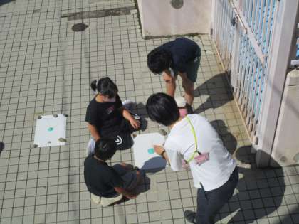 先日のかげふみ遊びで気が付いたことから,今日は,時間がたつとかげの位置はどのようになるのか調べました。