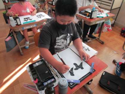 上の部分と下の部分の高さに注目しながら「笛」に挑戦しました。よりいい字が書けるように,何度も練習している姿はとても素敵でした。次の時間では,高さや点画に気を付けて,字形を整えて書いていきます。