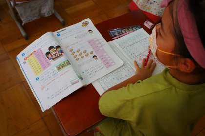 算数科のかけ算の学習では,九九を順に覚え,九九を使って問題を解いています。