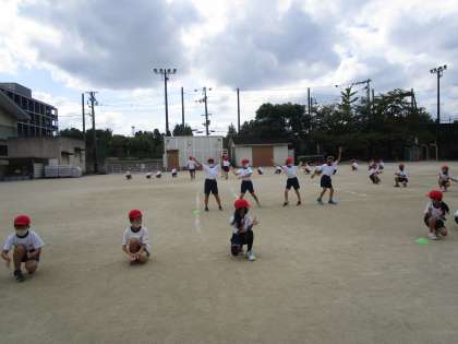 今日から運動場で練習をしました。