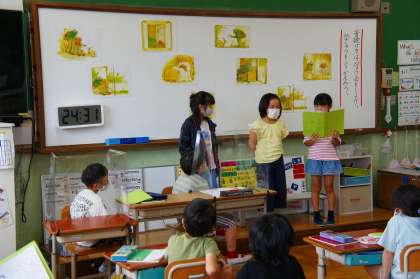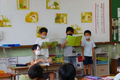 今まで学習してきたことを生かして,役になりきって音読することができていました。ナレーターを担当した子からも,言葉を強調したり速さを変えたり,たくさんの工夫が見られました。