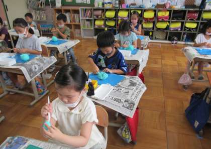 子どもたちは思い思いの動物を思い浮かべて,夢中になってつくっていました。