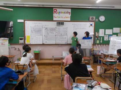 クラスワークでは,聞いている人を意識した発表を頑張りました。説明している表を指差したり,声の大きさや速さを意識したりとグループごとで工夫が見られました。算数科だけではなく様々な教科で,話し手・聞き手を意識して学習を進めていきましょうね。