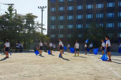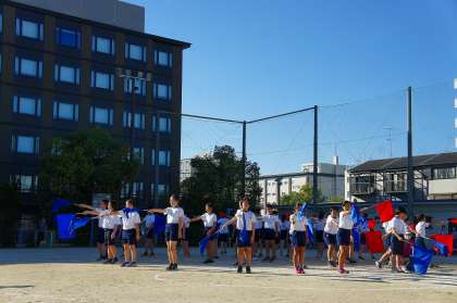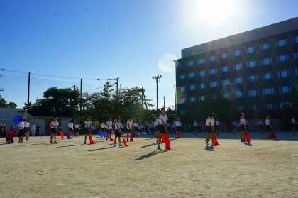 小学校生活最後のP.E.dayでした。“自分たちで作り上げるP.E.day”と目標を掲げて準備,運営,片付けと最初から最後まで一生懸命頑張る姿が見られました。今日の日まで練習を積み重ねてきたフラッグ演技は,学年で一致団結して踊りました。旗の音が運動場に鳴り響いていてとてもかっこよかったです。