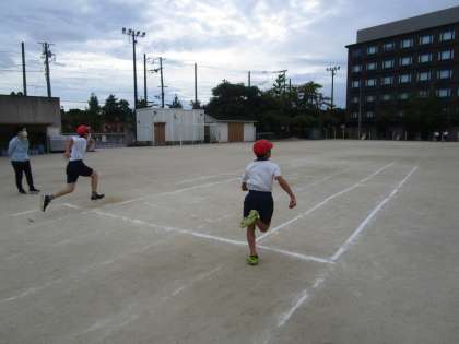 P.E.dayの50m走に向けて,どのように動くかシミュレーションしました。シミュレーションとはいえ走りは本気。全力で駆け抜けていく子どもたちでした。