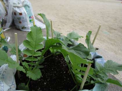 大根の間引きをして3日がすぎました。芽がどんどん大きくなっています。