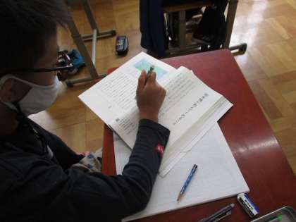 国語科では説明文「固有種が教えてくれること」の範読を聞きました。聞きながら読んでいるところをなぞったり,内容に応じた資料を指さしたりと,集中して聞くことがきました。