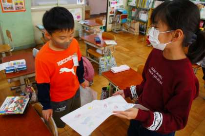 きょうは自分たちで作った「いくつかな?クイズ」を友だち同士で出し合いっこしました。