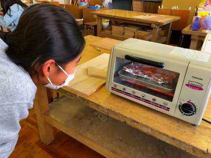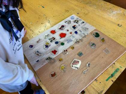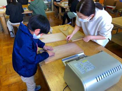 今日の活動は「プラ板作り」です。好きな絵を描いたり写したりして,トースターで温めます。可愛らしい作品がたくさんできましたよ。