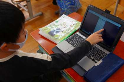 文のまとまりに気をつけて読むために,ロイロノートのプレゼンテーション機能を使い,本文を正しい順番に並び替えてみました。