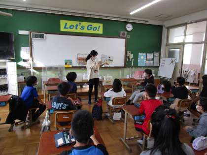もみじ読書月間の取組の一つとして,教職員による読み聞かせを行いました。5年生の教室には,3年生の中村先生と2年生の荻本先生が来てくれました。担任の先生とは違う先生に読み聞かせてもらうことで,本に対する関心がわいてきたようです。