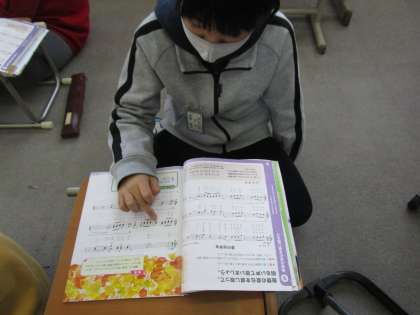 音楽科「曲想の変化を感じ取ろう」では,「夢の世界」の歌唱に挑戦しました。繰り返しの記号に気をつけて,どの順に歌っていくかを理解した子どもたち。きれいな声で歌おうとする姿は,さすが高学年でした。